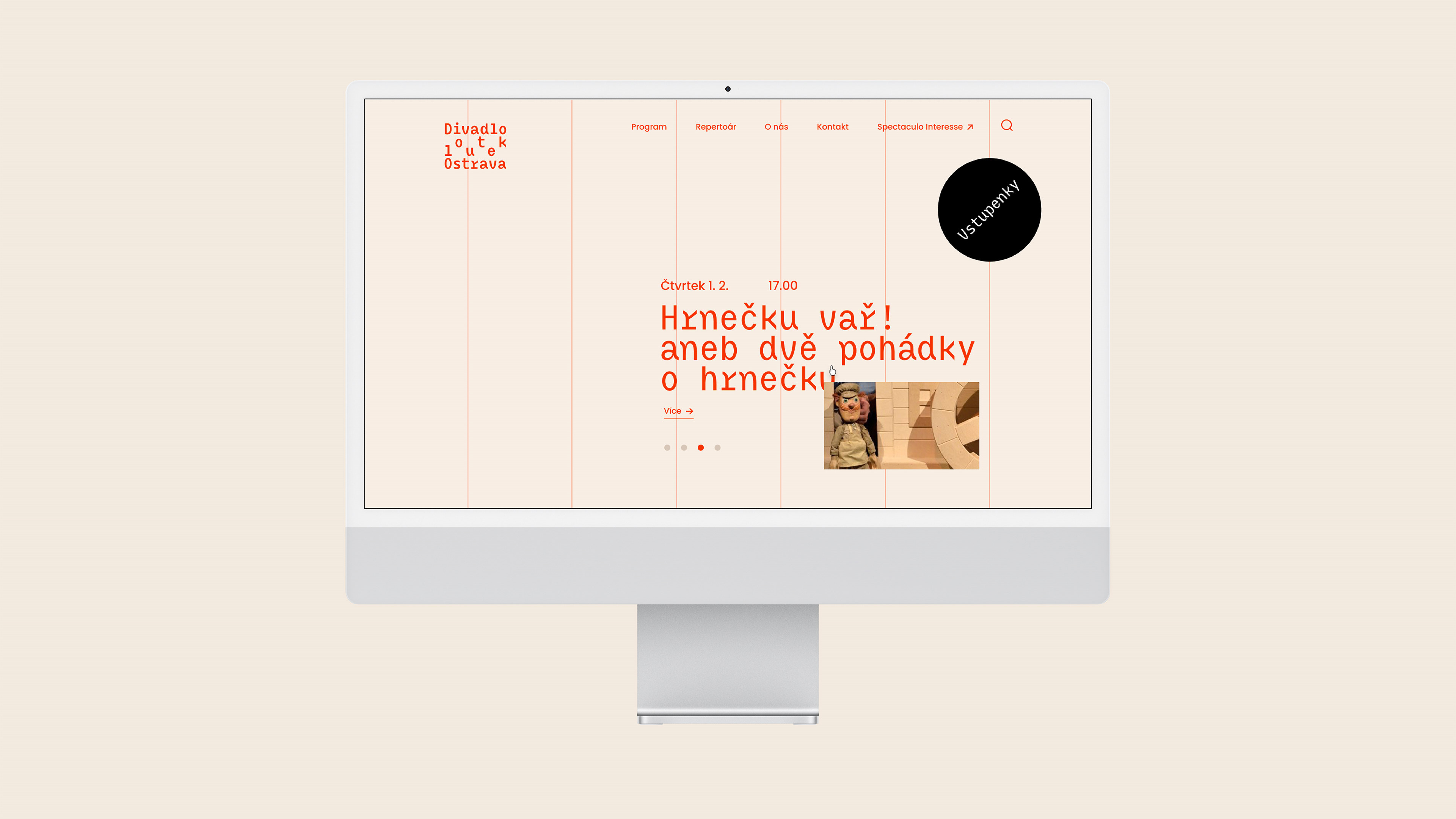 Návrh vizuální identity pro Divadlo loutek Ostrava. Výzvou v zadání byla variabilita vizuálu pro různé druhy představení a zároveň širokou věkovou škálu diváků. Koncept návrhu spočívá v zavěšování kompozic na lanka – jako loutky.