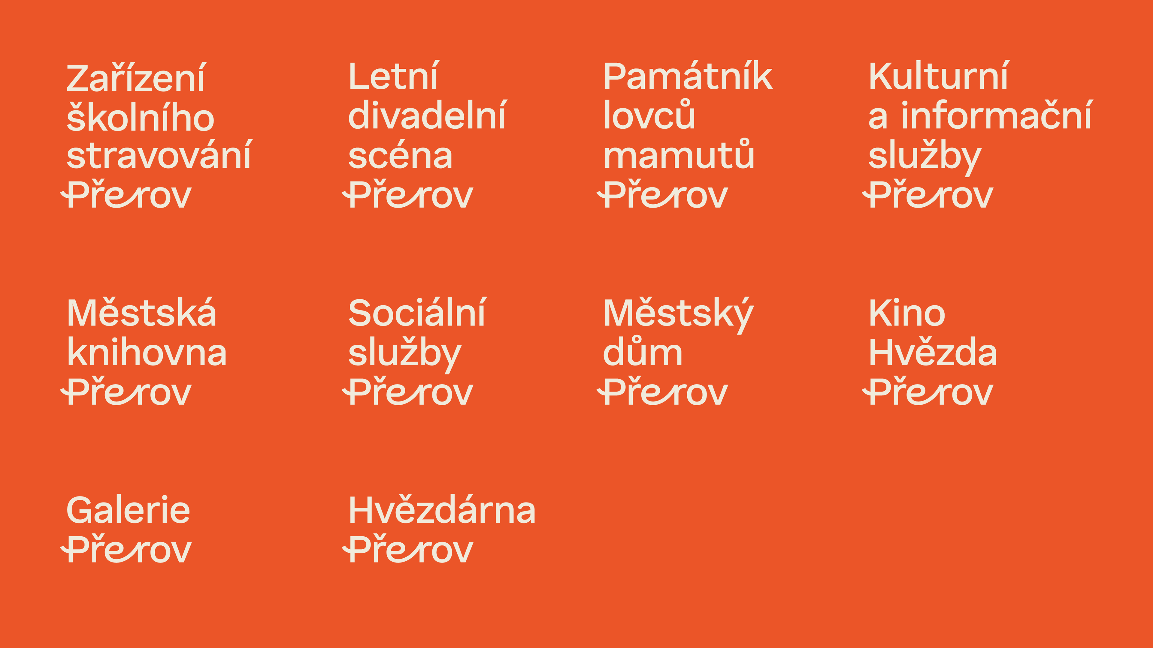 Spojka Display byla navržena městu na míru. Obsahuje výjma stylistyckých alternativ vybraných znaků také speciální ligaturu „Přerov“, která nese podobu loga a díky níž je značka součástí psaného textu.