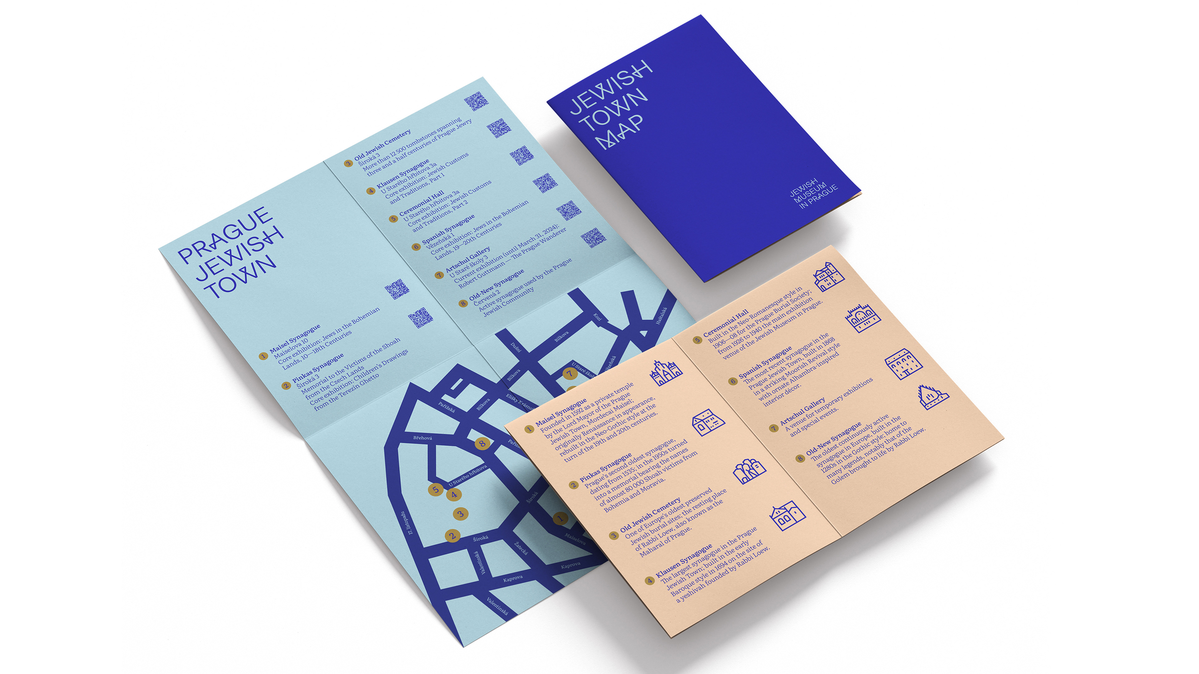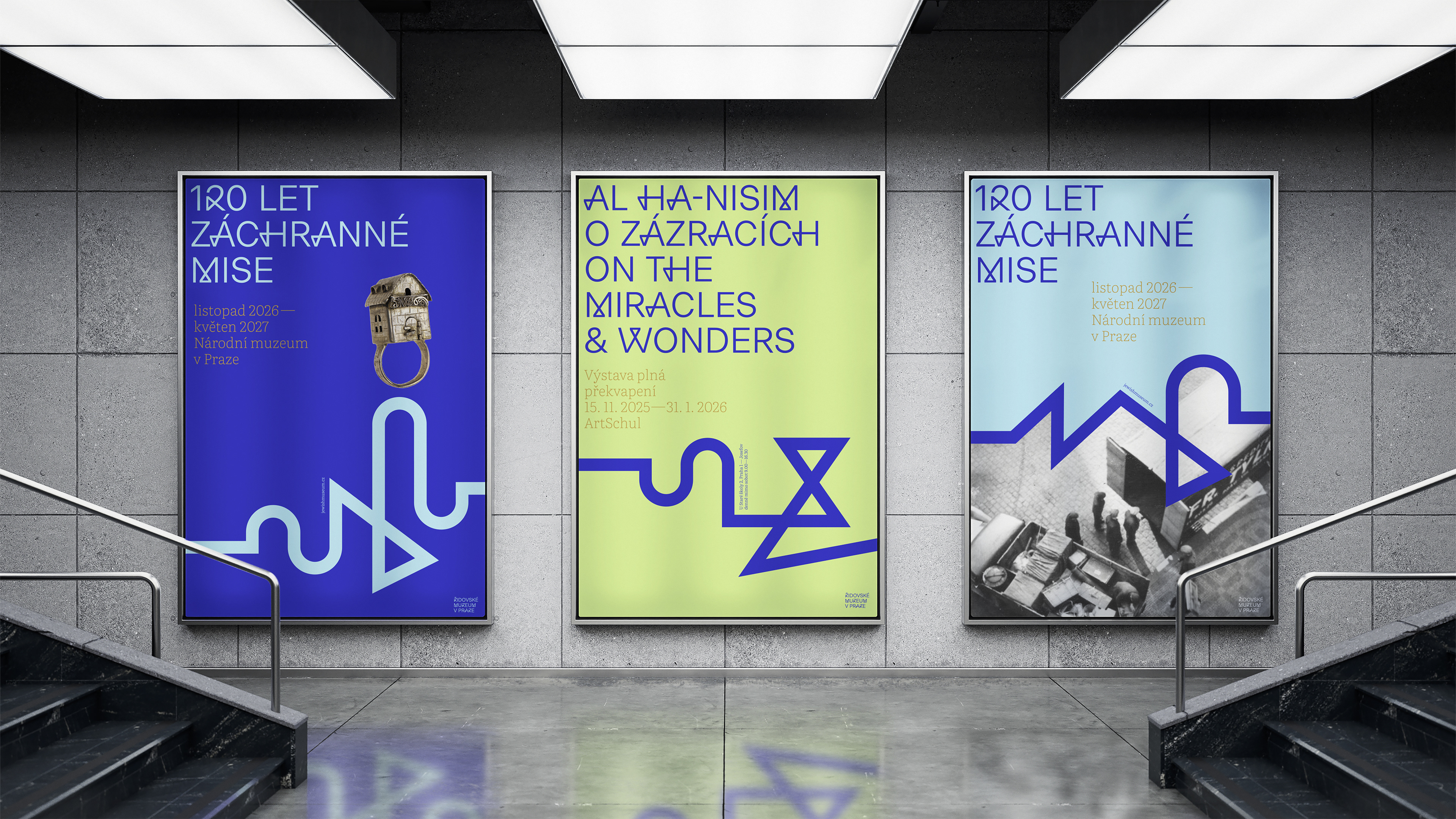 Hlavním motivem vizuální identity je lomená linka, která ilustruje příběh českých Židů. Představuje vzestupy, životní zlomy i tragické osudy jednotlivců a celé komunity. Připomíná dobré i zlé časy. Symbolizuje kontinuitu s životem předchozích generací a ukotvení v tradici. Linka jako základní motiv se objevuje napříč všemi výstupy — v logotypu, písmu Mailsel Sans navrženém na míru i grafických prvcích. Její průběh je inspirován židovskými symboly a ornamenty nacházejícími se v pražských synagogách.